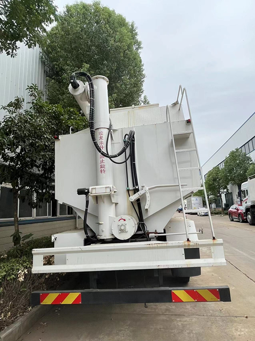 可獨(dú)立控制各分倉(cāng)卸料順序和速度,整車3條蛟龍(底部水平絞龍、尾部垂直絞龍、頂部卸料絞龍),由取力器經(jīng)車輛變速箱取力后,將動(dòng)力傳動(dòng)至高壓油泵以驅(qū)動(dòng)液壓系統(tǒng)帶動(dòng)各絞龍工作,或者由3個(gè)5.5kw 380v電機(jī)帶動(dòng)各絞龍工作,頂部絞龍液壓控制舉升,可左右旋轉(zhuǎn)180°此車公告+環(huán)保+燃油齊全,全國(guó)上戶無憂!